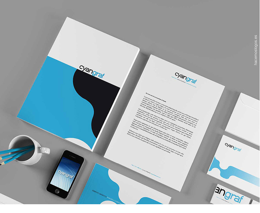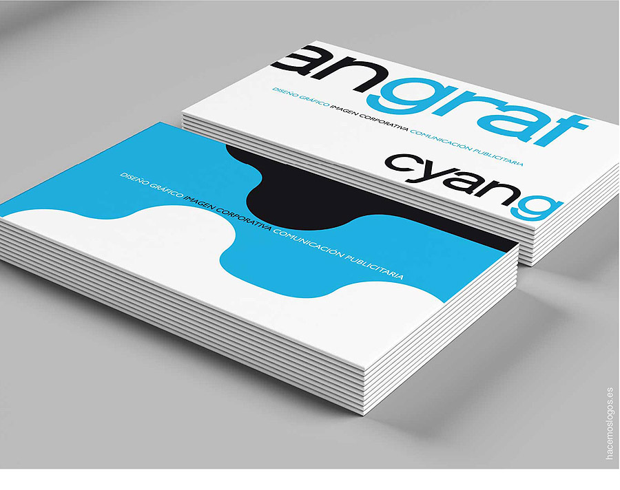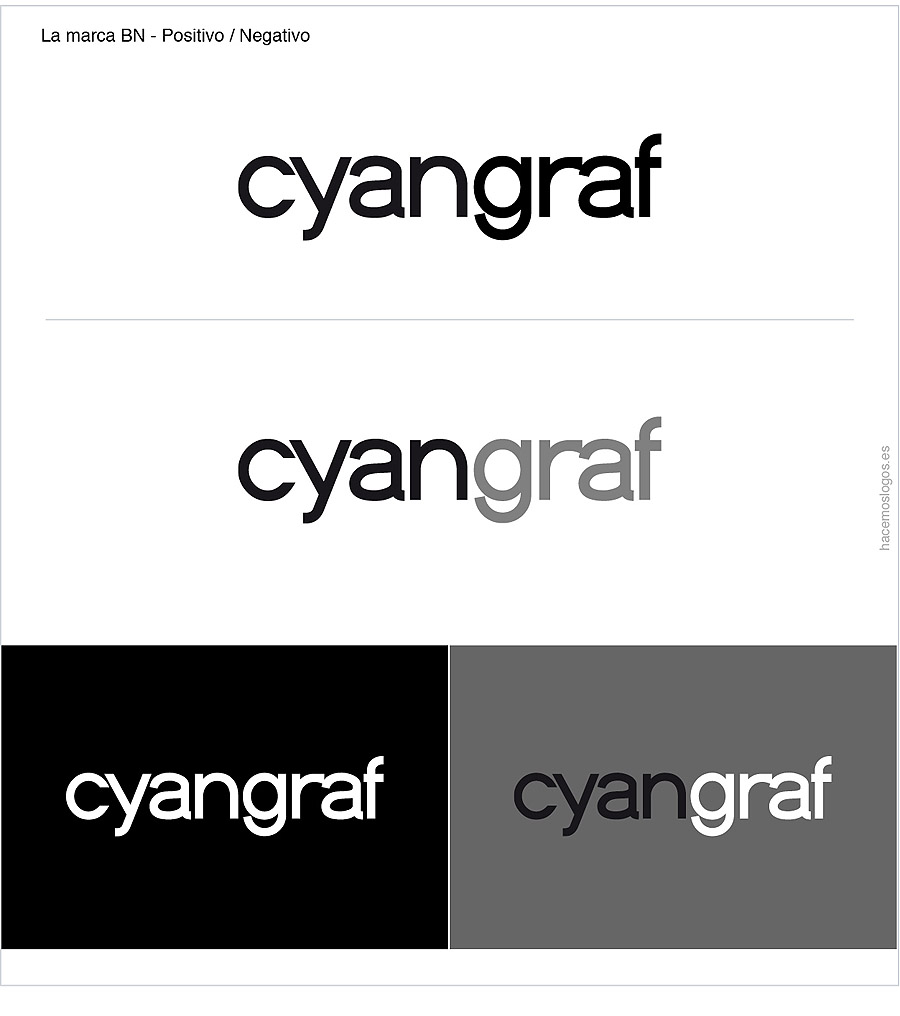 Optamos por simplificarlo dejando simplemente en un estricto logotipo, formado por el nombre comercial del estudio presentado en una tipografía clara y legible, en la que diferenciamos las dos partes de las que consta el acrónimo: cyan (nombre del azul primario en artes gráficas) y graf (apócope de gráfico).