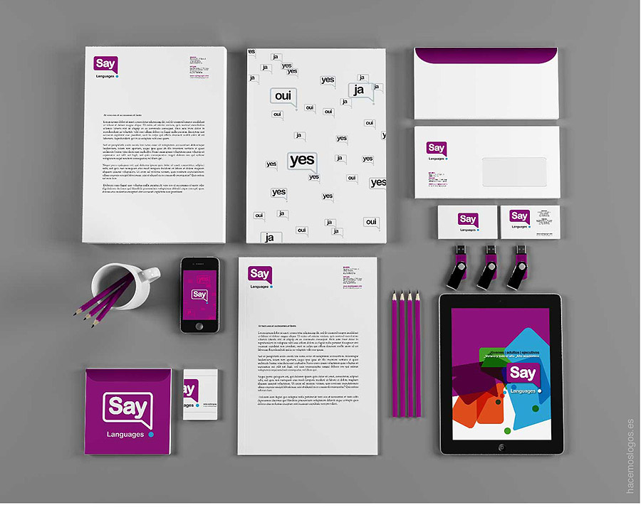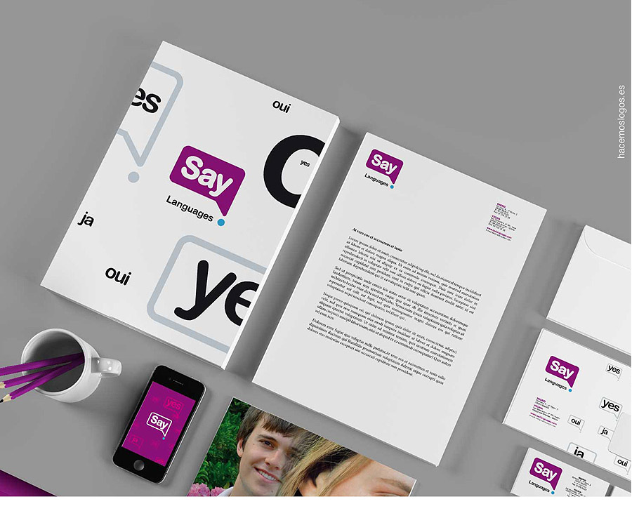 Cuando nos encargaron la imagen de una empresa dedicada a los idiomas tuvimos claro desde el primer momento que la idea-fuerza a transmitir era la del «habla». Un idioma es una herramienta de comunicación entre personas y nada mejor para representar la abstracción de esta capacidad humana que la del «bocadillo», elemento visual que todos conocemos gracias a las viñetas de los ilustradores y humoristas gráficos.