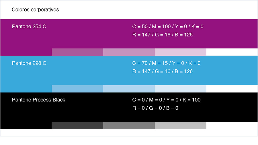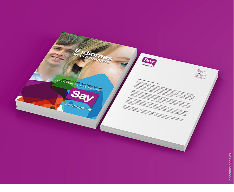 En cuanto al cromatismo acordamos normalizar con el cliente cualquier combinación en la que se respetase la aparición de la palabra «SAY» en negativo sobre un fondo oscuro, aunque en su versión principal el fondo lo constituyese el PANTONE 254C dado tanto su alto grado de visibilidad como las asociaciones positivas de alegría y dinamismo que su vibración óptica connota.